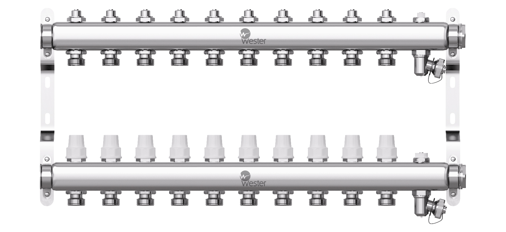 Коллектор нерж. Wester 1"-3/4 в сборе на 10 выходов с 2 заглушками