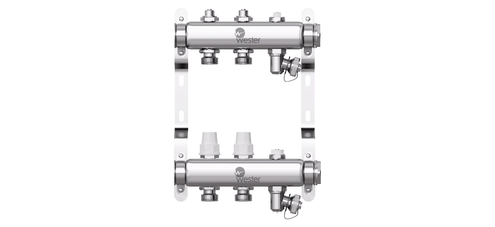 Коллектор нерж. Wester 1"-3/4 в сборе на 2 выхода с 2 заглушками