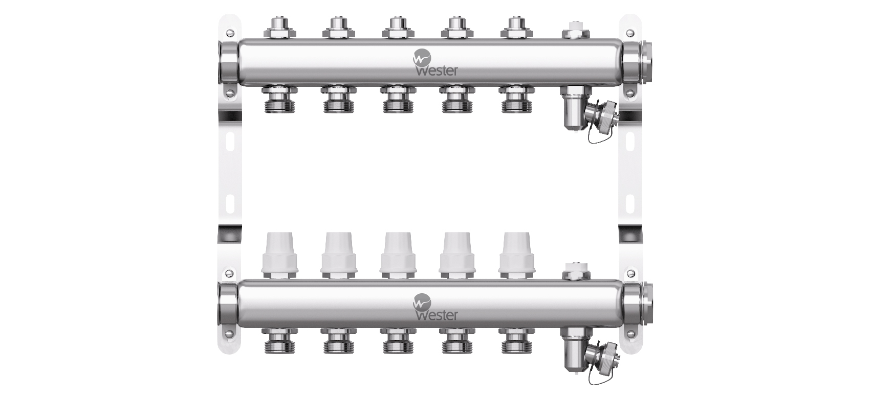 Коллектор нерж. Wester 1"-3/4 в сборе на 5 выходов с 2 заглушками