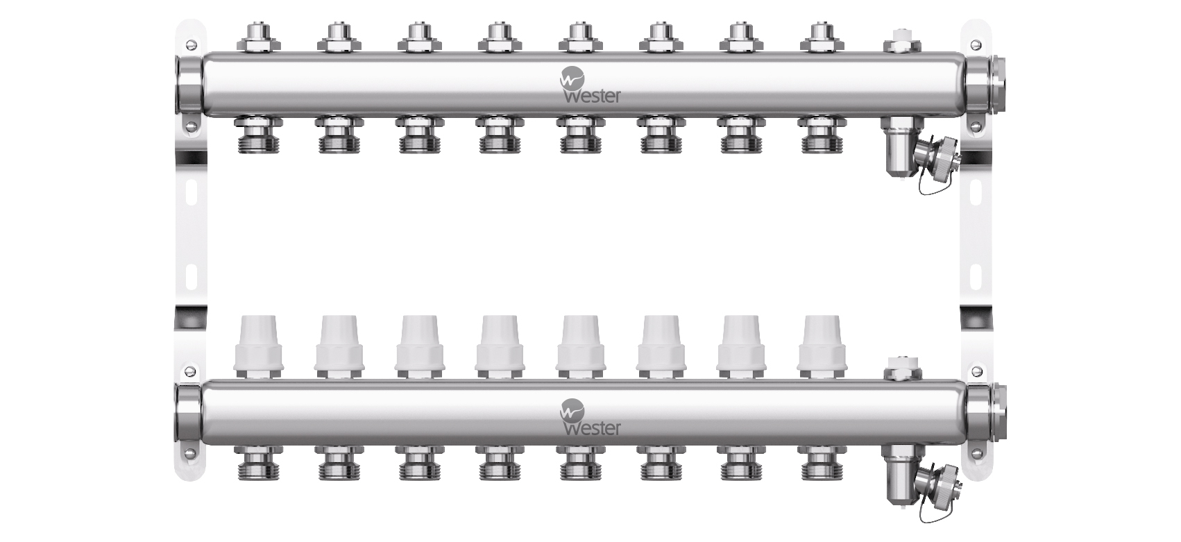 Коллектор нерж. Wester 1"-3/4 в сборе на 8 выходов с 2 заглушками