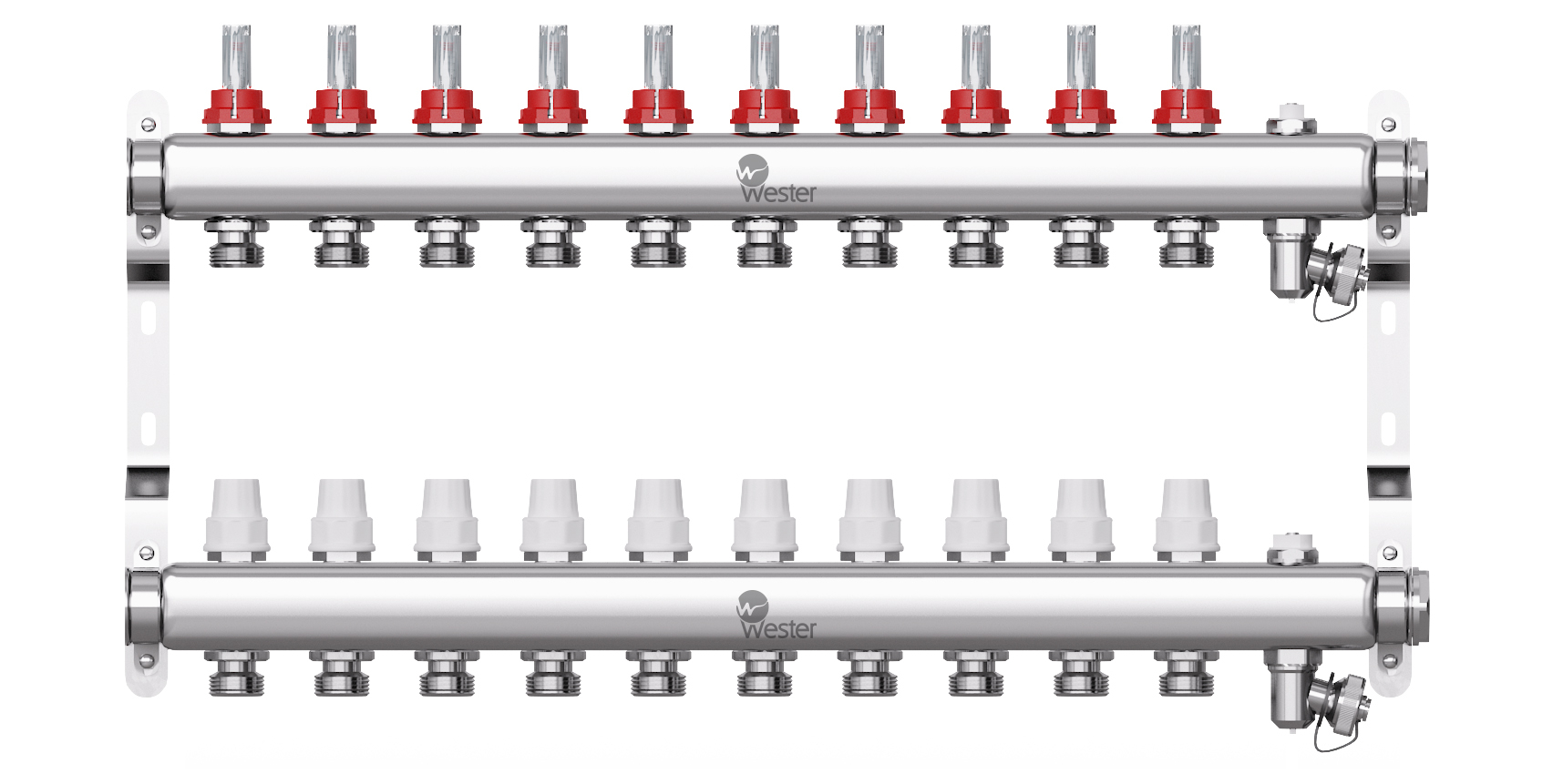 Коллектор нерж. Wester 1"-3/4 в сборе с расходомерами на 10 выходов