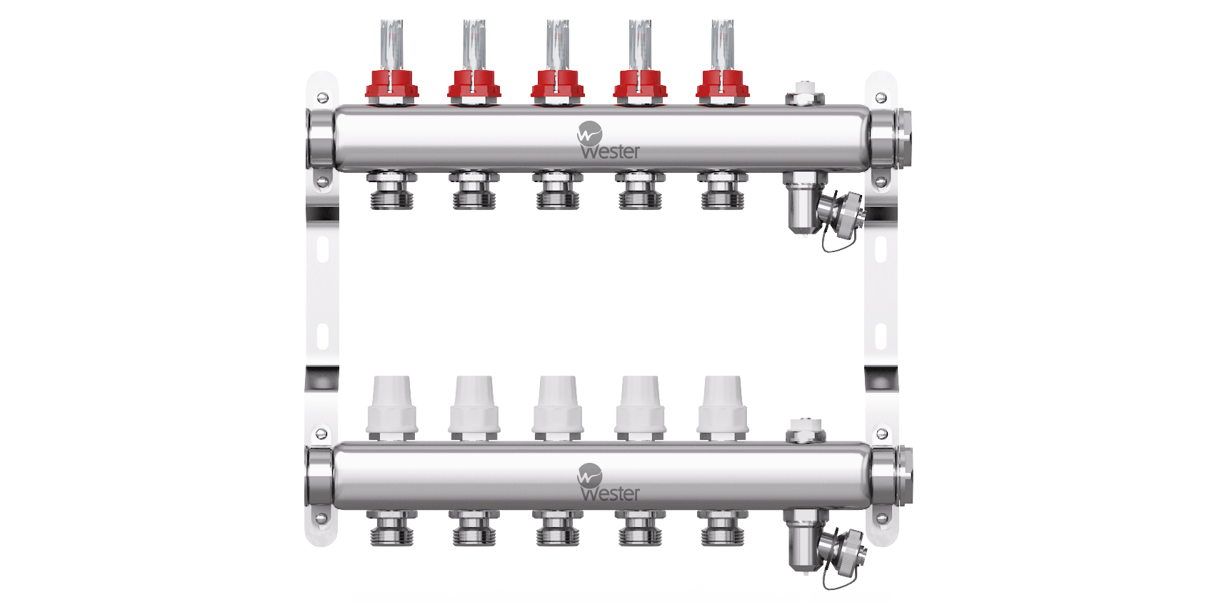 Коллектор нерж. Wester 1"-3/4 в сборе с расходомерами на 5 выходов