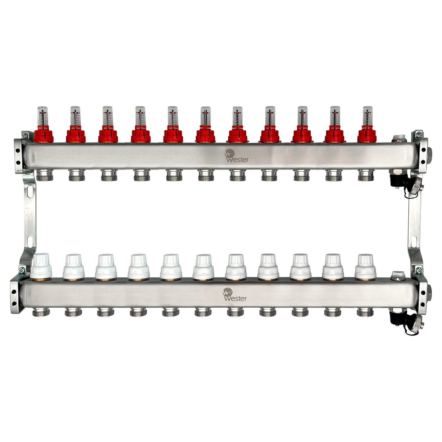 Коллектор нерж. Wester MUFS 1"-3/4 в сборе с расходомерами на 11 выходов