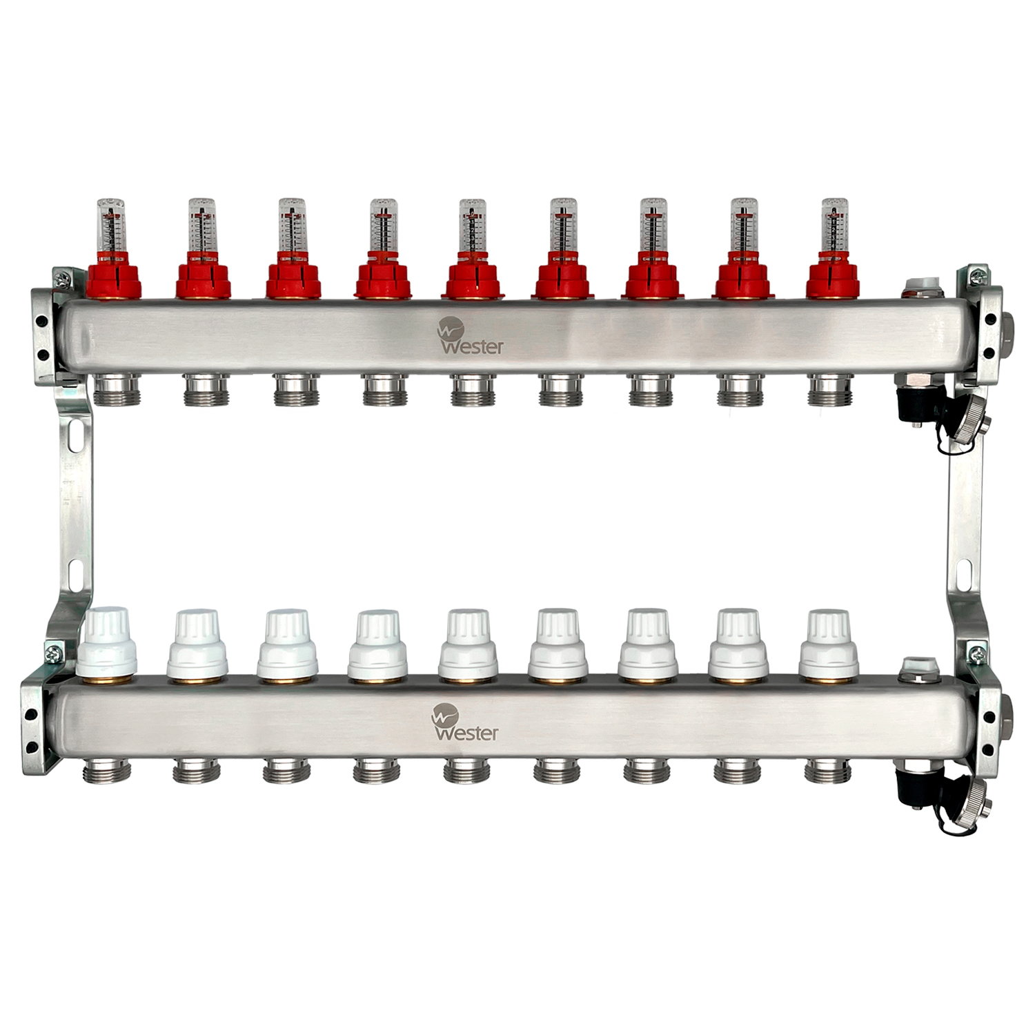 Коллектор нерж. Wester MUFS 1"-3/4 в сборе с расходомерами на 9 выходов