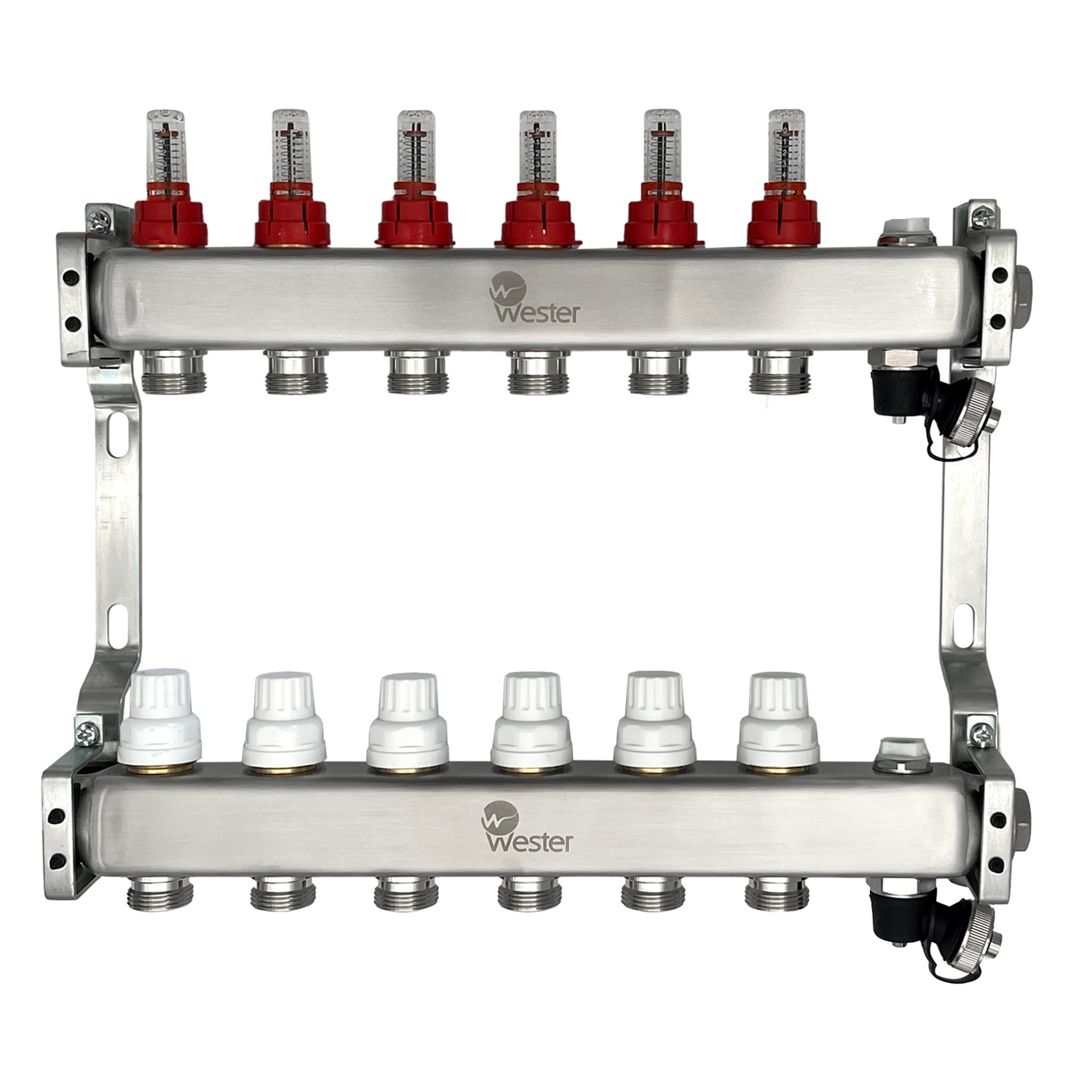 Коллектор нерж. Wester MUFS 1"-3/4 в сборе с расходомерами на 6 выходов