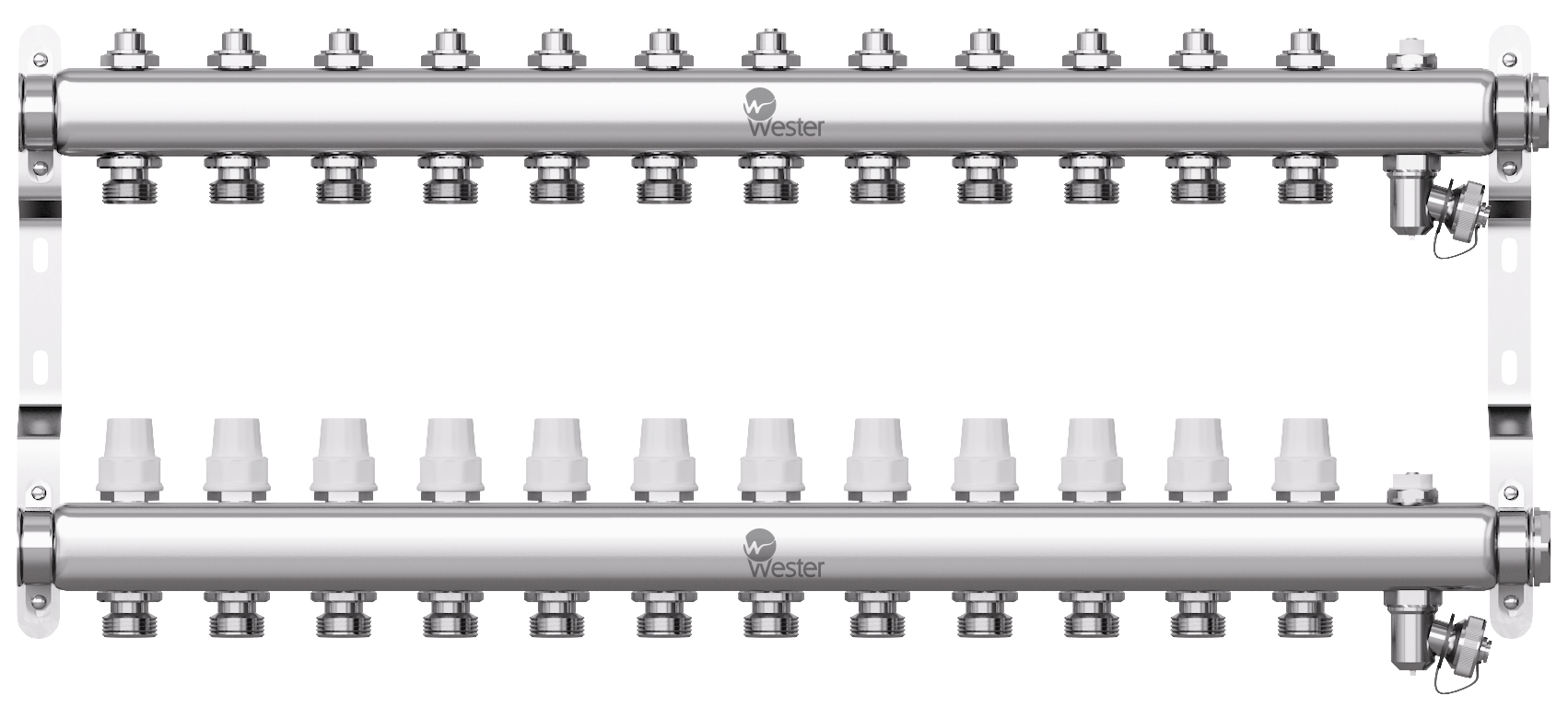 Коллектор нерж.Wester 1"-3/4 в сборе на 12 выходов с 2 заглушками