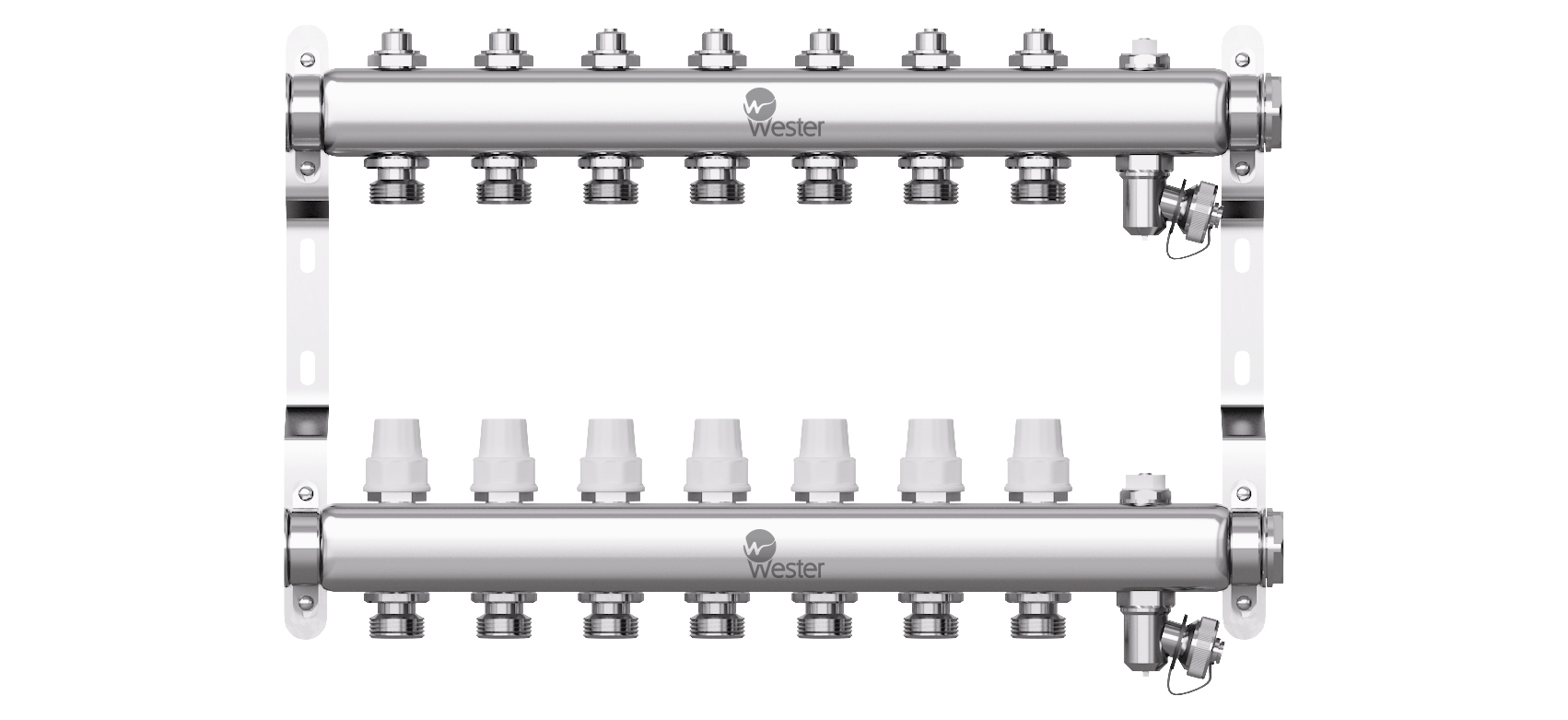 Коллектор нерж.Wester 1"-3/4 в сборе на 7 выходов с 2 заглушками