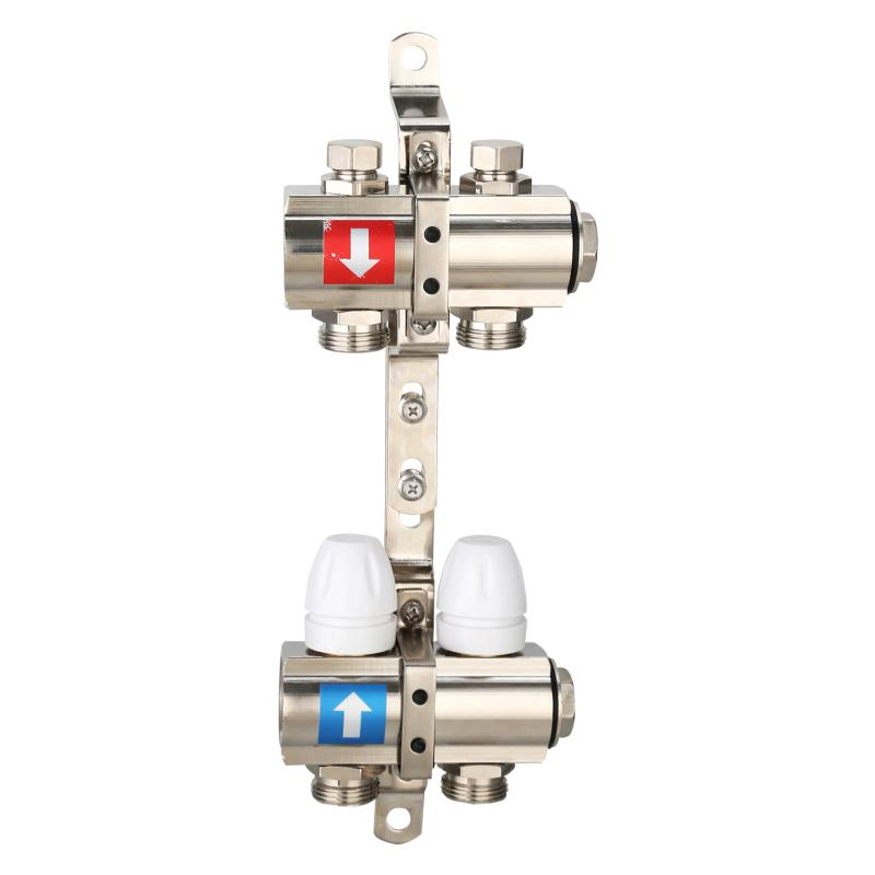 Коллектор регулируемый с запорными клапанами из латуни - 2 загрушки - 2 кронштейна 2-вых. x 1" x 3/4" Gappo G427.2