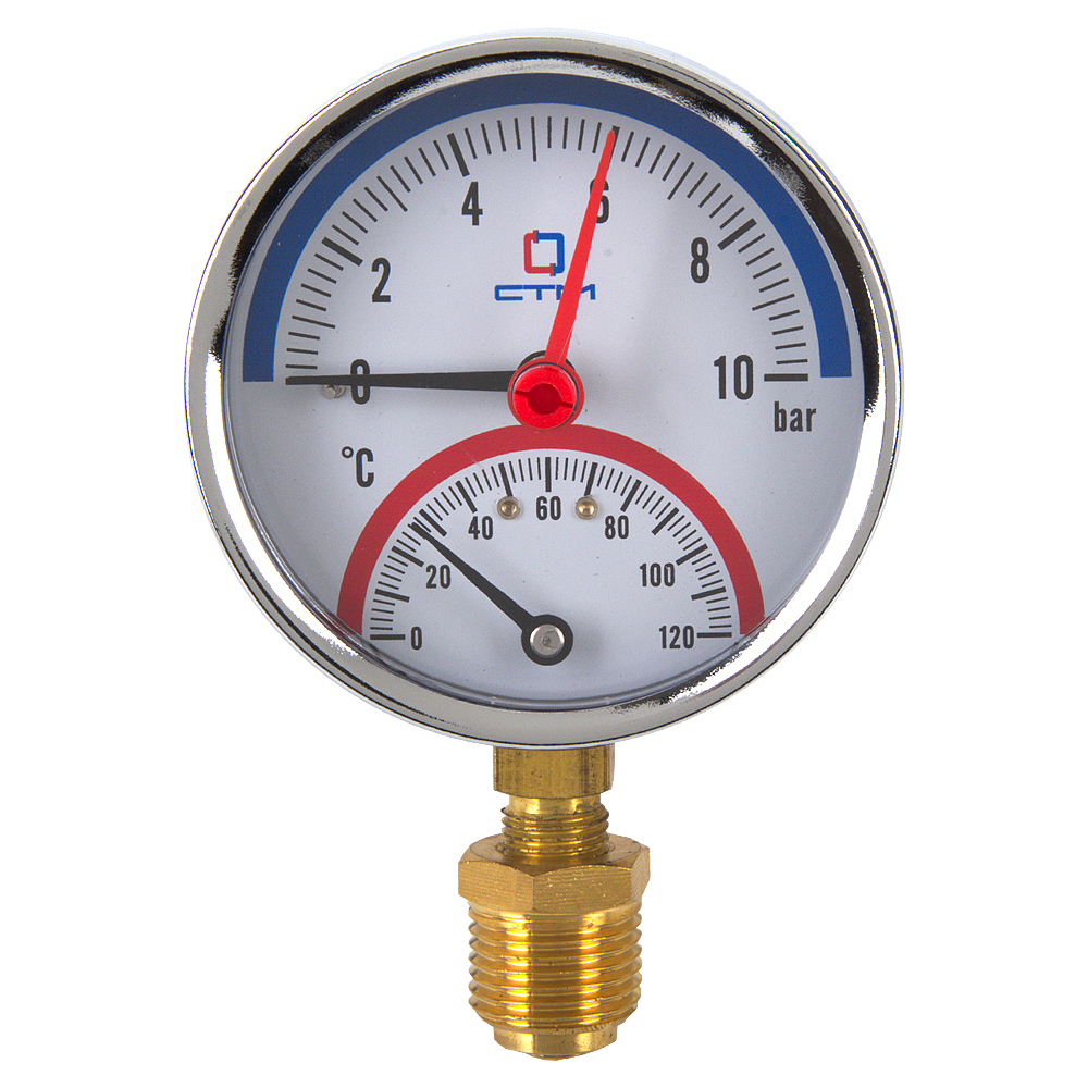 Термо-манометр радиального подключения 1/4", измерение до 10 бар; до 120°С СТМ