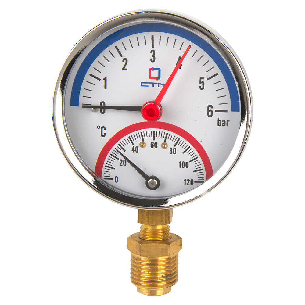 Термо-манометр радиального подключения 1/4", измерение до 6 бар; до 120°С СТМ