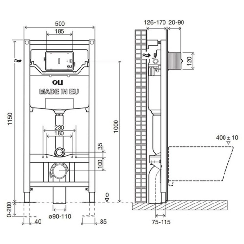 Инсталляция OLI 120 ECO 879236/879566 Sanitarblock mechanic без кнопки 500*1150*126 мм