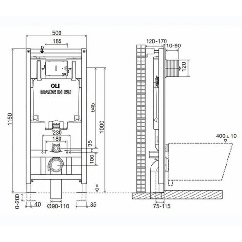 Инсталляция OLI 80 ECO 886914/887591 Sanitarblock mechanic, без кнопки 500*1090*140