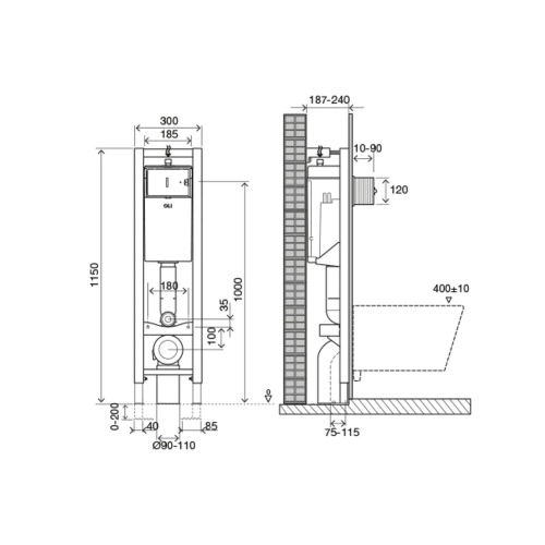 Комплектация: Крепежные элементы для унитаза Крепежные элементы для рамы Комплект соединительных патрубков для унитаза Фановый отвод для слива и переходник 90/110 G1/2” запорный клапан