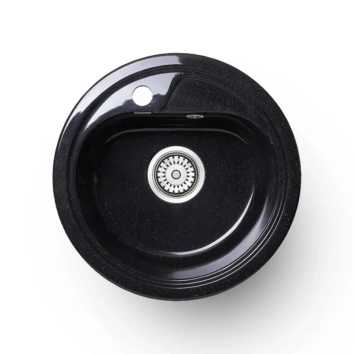Мойка AGATA AG1C1 Черная 440х190 мм кварцевая круглая глянцевая