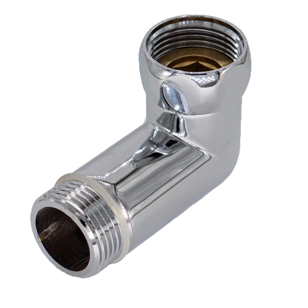 Уголок хромированный СТМ ТЕРМО для монтажа полотенцесушителя с внутренней/наружной резьбой 1"х1" Предназначен для герметичного присоединения полотенцесушителя к трубопроводу. Уголок изготовлен из высококачественной горячепрессованной латуни и покрыто хромированным покрытием. Хромированное покрытие устойчиво к коррозии и механическим повреждениям. В комплекте идут термостойкие силиконовые прокладки. Накидная гайка позволяет осуществить монтаж/демонтаж соединения не вращая трубы. Поставляется в индивидуальной упаковке.