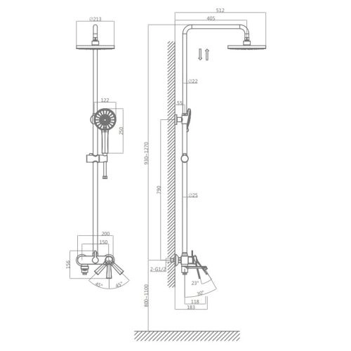 Комплектация: Смеситель, эксцентрики-2шт, декоративная шайба (отражатель)-2шт, штанга, крепление для штанги, кронштейн для верхнего душа, шланг душевой, лейка душевая, держатель душевой лейки, паспорт