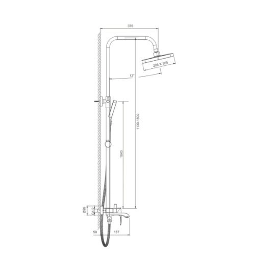Размер верхнего душа, мм 305