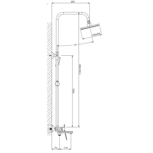 Душевая система с изливом BELZ B24533 верхний душ, лейка, хром (4)