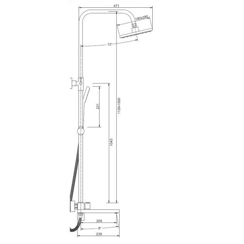 Душевая система с изливом BELZ B24613-7 верхний душ, лейка, черный (4)