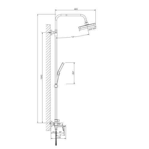 Главная Интернет-магазин Сантехника Смесители и комплектующие Душевая система с изливом BELZ B24715 верхний душ, лейка, хром (4)