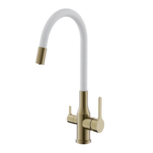 Главная Интернет-магазин Сантехника Смесители и комплектующие Смеситель для кухни BELZ B76814-5 с подключением к фильтру питьевой воды, корпус золото, излив белый (10)