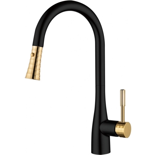 Смеситель для кухни D&K Rhein.Schiller DA1462517A с выдвижной лейкой, черный-золото