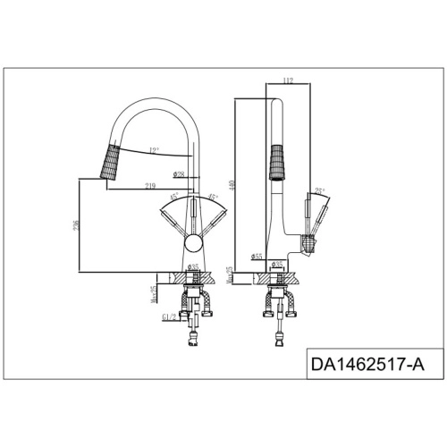 Главная Интернет-магазин Сантехника Смесители и комплектующие Смеситель для кухни D&K Rhein.Schiller DA1462517A с выдвижной лейкой, черный-золото