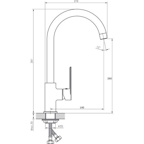 Высота смесителя 361 мм.