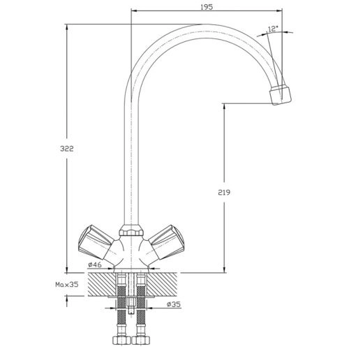 Высота смесителя 324 мм.