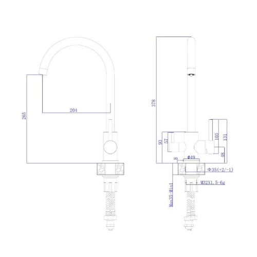 В смеситель установлен картридж D-35 с керамическими пластинами. Высота смесителя 378мм.