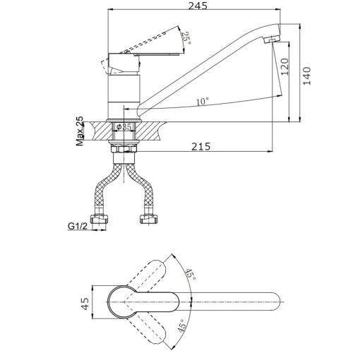 Высота излива до аэратора 120 мм.