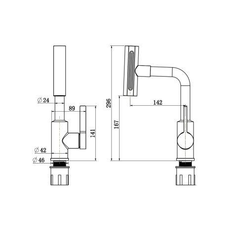 Длина излива 142 мм