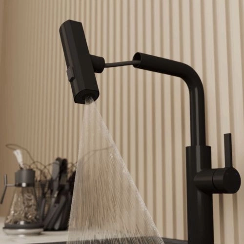 Смеситель для кухни RUSH Tinos TI3732-18Black черный, с выдвижной лейкой, поворотным аэратором, 4 режима
