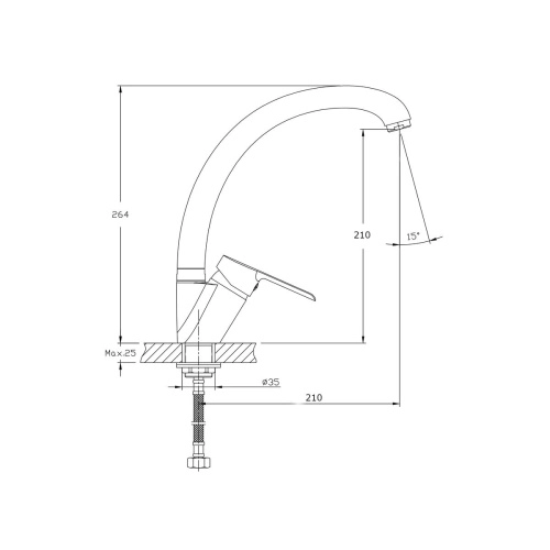 Высота излива до аэратора 210 мм.