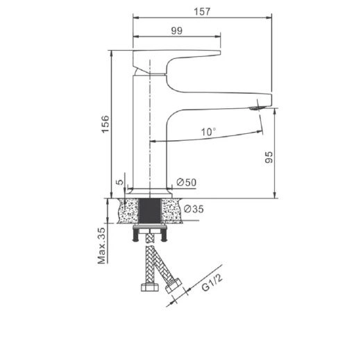 Размеры Ширина, мм 50 Высота, мм 156 Глубина, мм 157 Высота излива, мм 95
