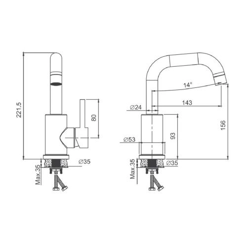 Длина излива 145 мм