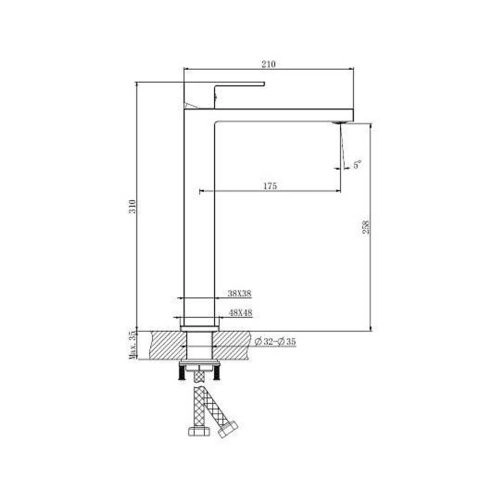 Смеситель для раковины BELZ B11613-3 высокий, оружейная сталь (10)
