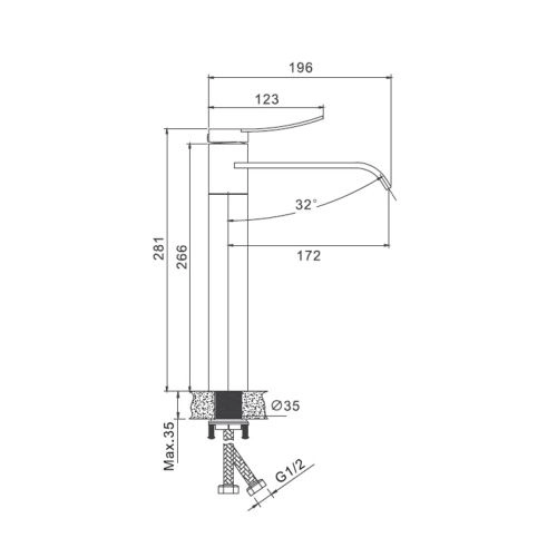 Высота излива, мм 235
