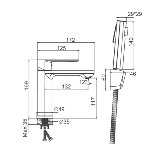 Ширина, мм 49 Высота, мм 169 Глубина, мм 172 Высота излива, мм 117