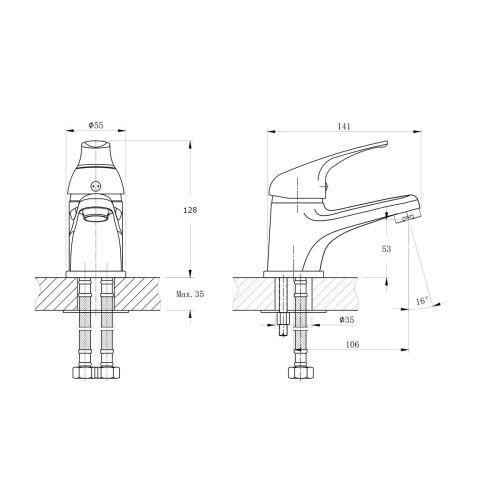 В комплекте гибкая подводка с латунными гайками 35см - 2 шт., присоединительная гайка S-32(34) мм, втулка-31мм, фум-лента, индивидуальный пакет, паспорт, гарантийный талон.