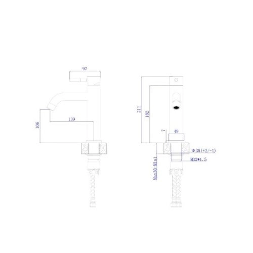 Излив литой неповоротный 139мм., высота излива до аэратора 106мм.