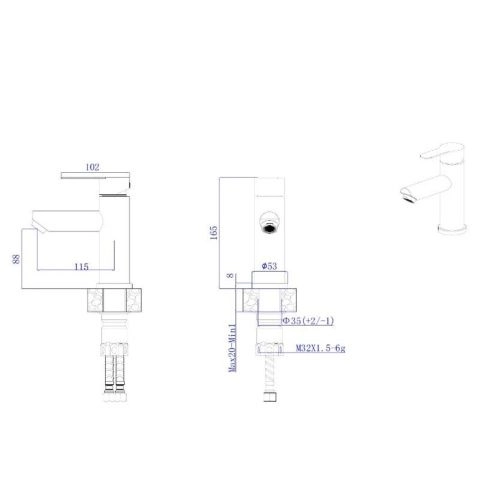 Излив литой неповоротный 115 мм., высота излива до аэратора 88 мм.