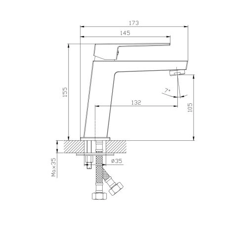 Излив литой неповоротный, высота излива до аэратора 132 мм.