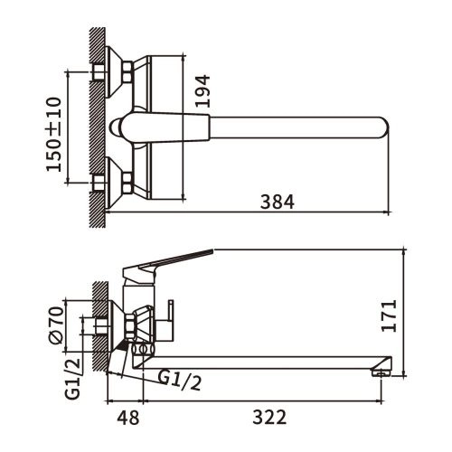 Межосевое расстояние (расстояние между выходом горячей и холодной трубы) 150 мм.
