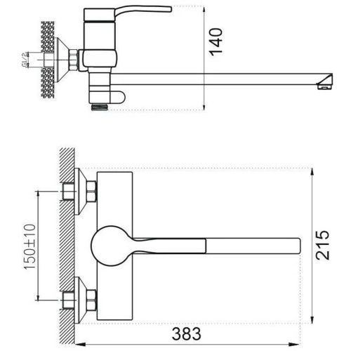 Межосевое расстояние (расстояние между выходом горячей и холодной трубы) 150 мм.