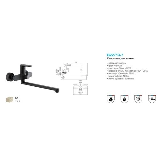 Главная Интернет-магазин Сантехника Смесители и комплектующие Смеситель для ванны BELZ B22713-7 черный (8)
