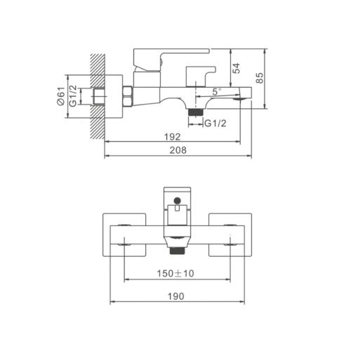 Смеситель для ванны BELZ B60658, короткий излив, хром (8)