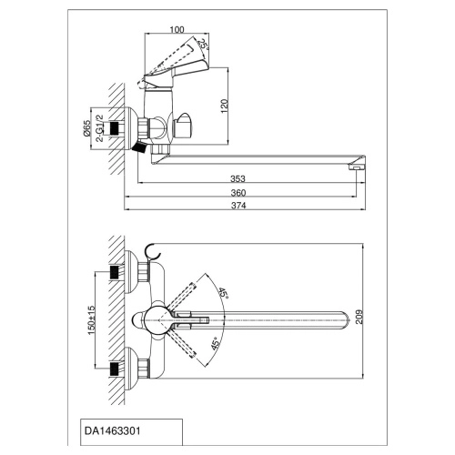 Смеситель для ванны D&K Rhein Schiller DA1463301 хром, длинный излив (8)