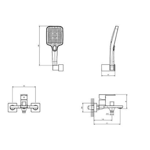 Смеситель для ванны DQ Dortmund DA1713206, короткий излив, графит (10)