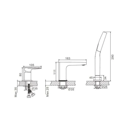 Главная Интернет-магазин Сантехника Смесители и комплектующие Смеситель для ванны на борт BELZ B66713-3 оружейная сталь (4)